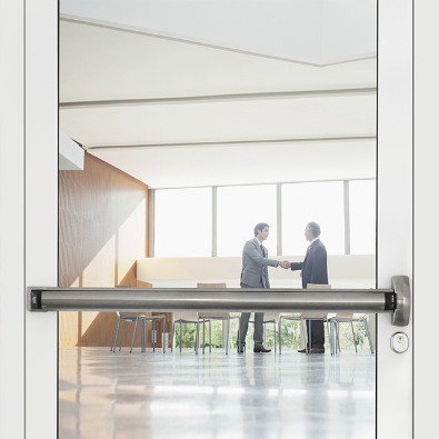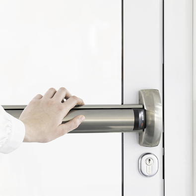 With MATIC EXIT the door is always securely locked without having to use a key. In the event of an emergency, the door can be opened from inside by simply pressing the panic bar.
