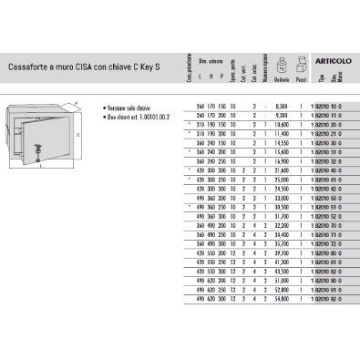 La serrure à 6 gorges avec pêne antifriction (système breveté par CISA) est actionnée par une clé à double panneton avec plus de 244 millions de combinaisons possibles