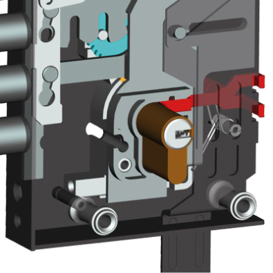 La particolare posizione in cui il meccanismo di blocco è inserito all'interno della serratura consente alla serratura stessa di rimanere ambidestra.