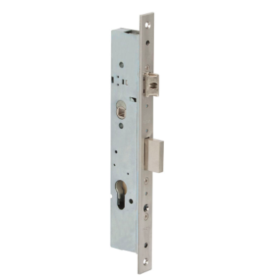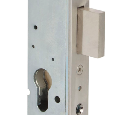 Повышенная защита дверей, не запертых ключом на все обороты. Автоматически блокирующаяся защелка: при закрытии двери отодвигается поршень и автоматически блокирует защелку.